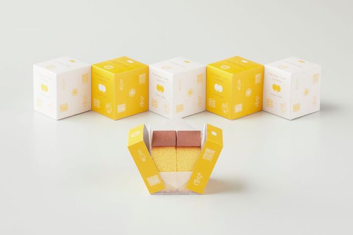 そんな福砂屋の中で近年人気なのが「フクサヤキューブ」。職人が焼き上げたカステラ二切れが入ったキューブ型の小箱です。包みを解くように開けた小箱の中には、お茶菓子にちょうどいいサイズのカステラが入っています。通年販売している「たまごカラー」の黄色と白のパッケージは、丁寧な贈り物をしたいビジネスシーンなどに利用される方も多いのだとか。