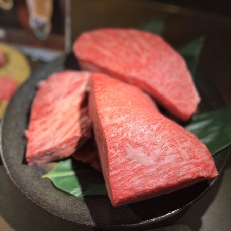 おすすめは、イチボ・ハラミ・ランプの3種食べ比べ盛り合わせ。それぞれのお肉の味わいを目いっぱい楽しめます。(1600円/人、2人前より注文可)