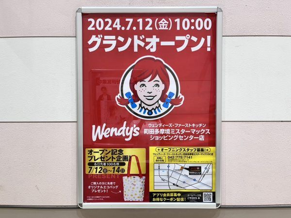 町田市多摩境にあるMrMaxショッピングセンター内に、ウェンディーズ・ファーストキッチンさんが2024年7月12日金曜日10時に新規オープンするそうです!