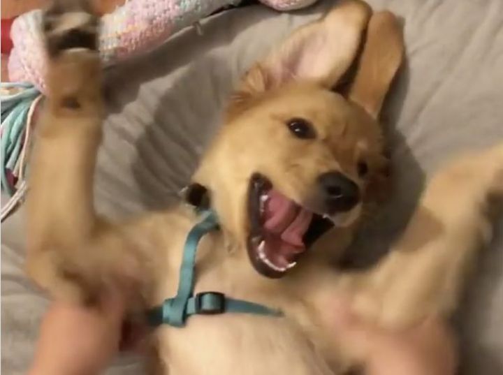 笑い声が聞こえてきそう♪ モフモフタイムが最高に楽しそうな犬さん。