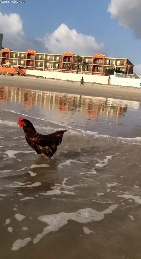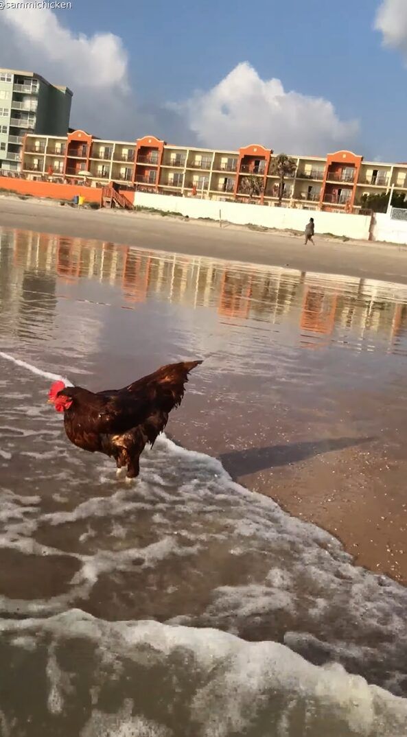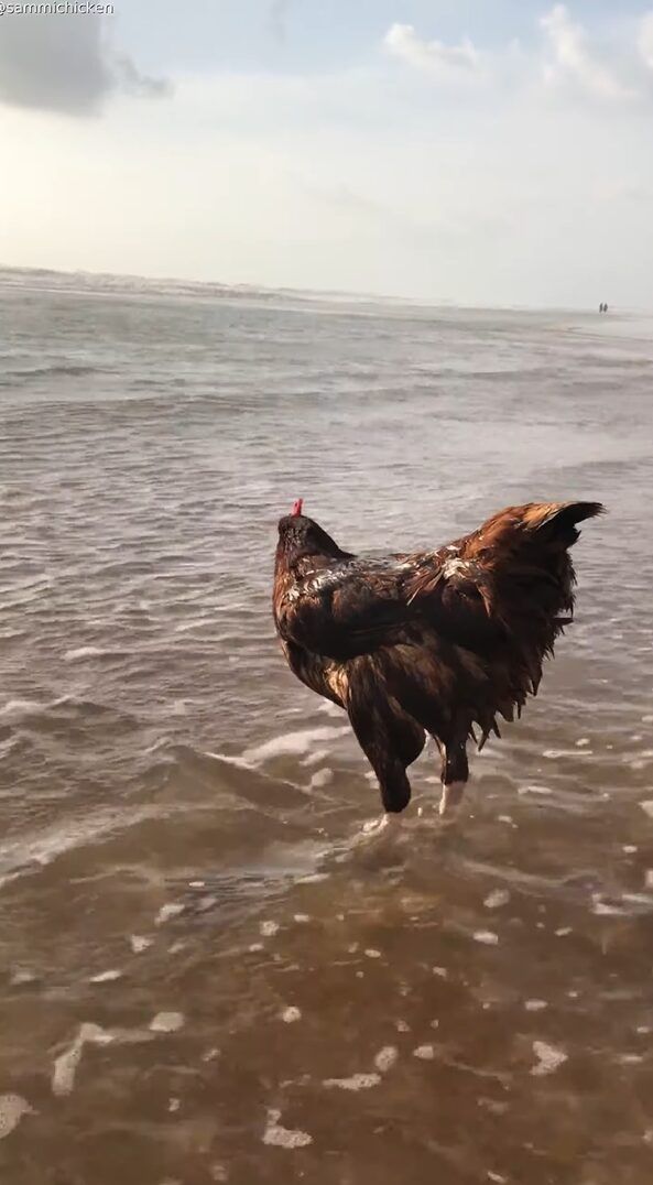 静かに波が打ち寄せる波打ち際に佇んでいたのは、なんとニワトリです! この子は、飼い主さんと一緒にビーチに遊びに来たニワトリの『サミ』です。