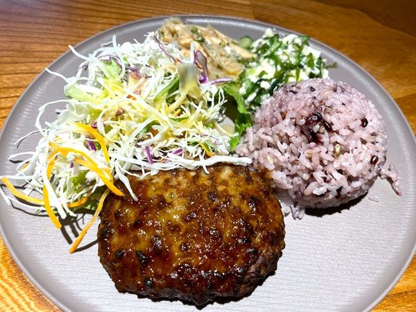 唯一の主菜にハンバーグを選んだ「レギュラー」ですが、これだけでも十分なボリューム感。ハンバーグがふっくらジューシーでたまりませんでした。野菜をもりもり食べられて体の内側から綺麗になっていく感覚に!