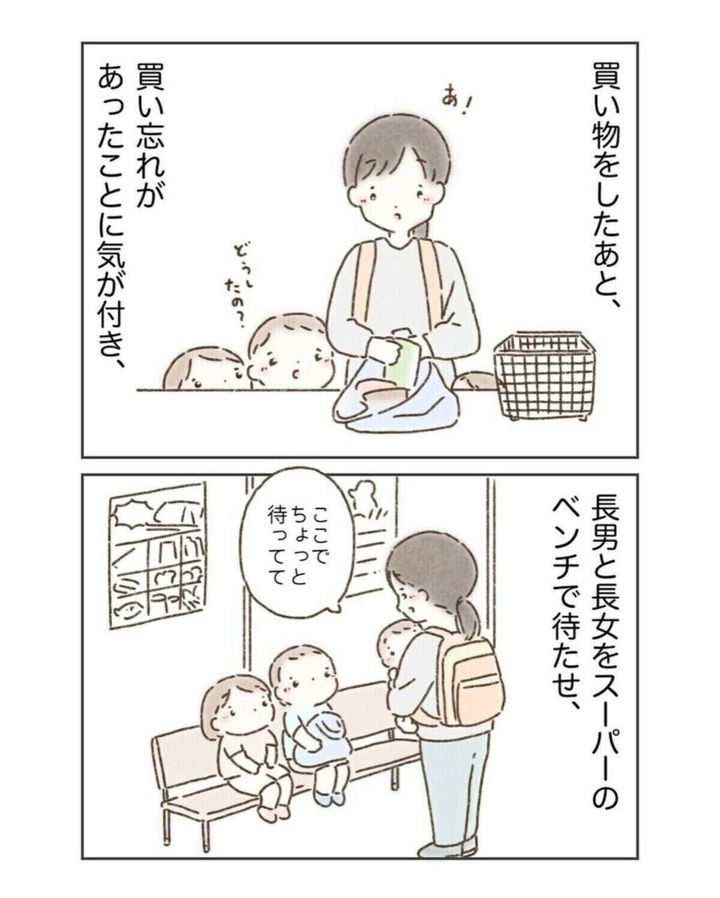 お買いもののあと、買い忘れに気が付いた西山さんは上の2人の子どもを待たせて再び買い物へ。買い物をすませて戻ってくると、子どもたちが見知らぬおばあさんといました。