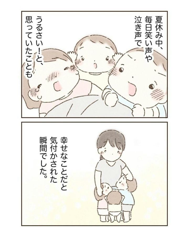 いつも子育てをされている皆さん、毎日おつかれさまです。日々慌ただしく育児をしていると、ときにこれであっているのだろうかと不安になることもあると思います。西山ともこ(@nishiyama_tomoko07)さんは、毎日育児に追われているママ。西山さんは、ワンオペで、2歳差きょうだい3人の育児に日々奮闘しています。この作品は当時、子どもが6歳、4歳、2歳のころのお話です。