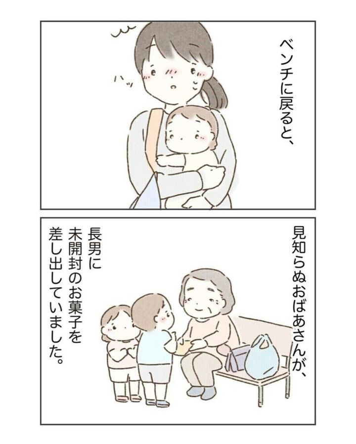 子どもが見知らぬ人といると何かしてしまったのではないかと、ひやりとした西山さん。しかし6歳の息子は、親がいない場面でおばあさんに対し、とても思いやりのある優しい行動をとっていたことを聞かされ驚いたのでした。