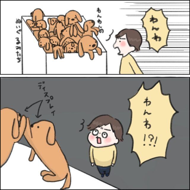 僕のお友だちがいっぱい・・!?たくさんの犬のぬいぐるみに息子が大興奮した理由がかわいすぎた|ねむりひつじの子育て絵日記