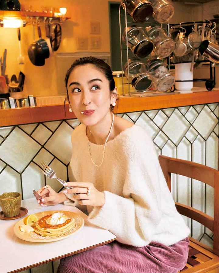 冬の白は最高の贅沢。柔らかなトーンの白ニットは素肌に優しく馴染みハッピー感満載!そこにさらにツヤをプラスしてくれるのが、今どきデザインのパールの存在。お気に入りのカフェで過ごす時間だってもっと素敵なものに。ピアス¥414,000ネックレス¥380,000左手リング¥237,000右手リング¥260,000〔すべて12月28日現在の価格〕(すべてTASAKI)ニット¥45,000(ANAYI)パンツ¥18,000(BLACK BY MOUSSY/バロックジャパンリミテッド)