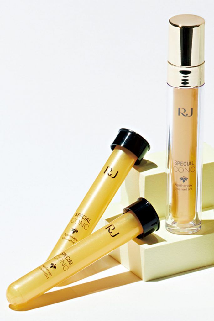 はちみつなどのミツバチ産品を使った代替療法である「アピセラピー」(〝アピ〟はラテン語でミツバチのこと)に取り組む山田養蜂場。新製品は独自に開発したローヤルゼリーエキスと、7つの美容成分に加え、エイジングケア成分「ナイアシンアミド」を22%濃密配合した美容液。とろりとしたテクスチャーがなめらかになじみ、ハリとツヤを与えてくれます。小分けされている理由は品質保持のためで、1本を2週間で使い切るイメージ。3本使い切るのが楽しみすぎる美容液です。10mL×3本¥16,500(山田養蜂場)※1/6新発売