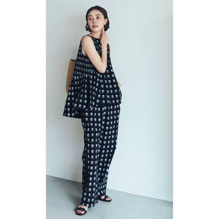 華やかな総柄プリントの ふんわりトップス×ゆるパンツは 着心地ラクでもオシャレに決まる