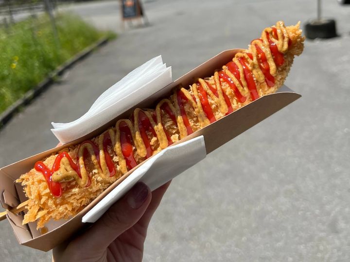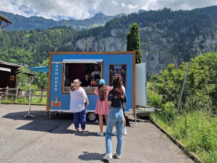 スイスといえばチーズフォンデュやスイスチョコ、ソーセージなど有名な食べ物がたくさん。そこで、ラウターブルンネンを訪れたらぜひ試して欲しいのが、「Betty's Corn Dogs」のコーンドックです。
