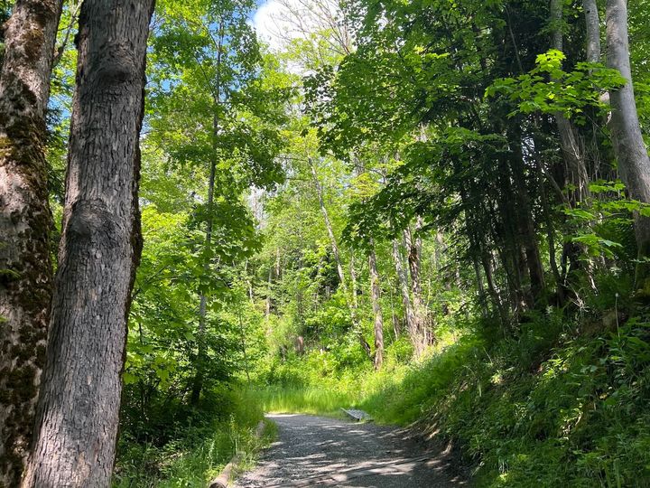 ハイキングコースでは、ラウターブルンネンからウェンゲンの駅まで平均1時間30分ほど。渓谷と周囲の美しい山々の景色が楽しめる素晴らしいトレイルです。上り坂が続きますが、日陰の多いコースなので比較的歩きやすく、自然を感じながらのんびりと足を進めることができます。