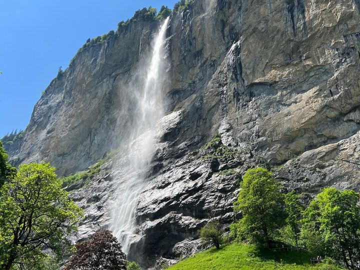 観光するうえで欠かせないのが、村のランドマークとして知られている、「シュタウプバッハの滝(Staubbachfall)」。