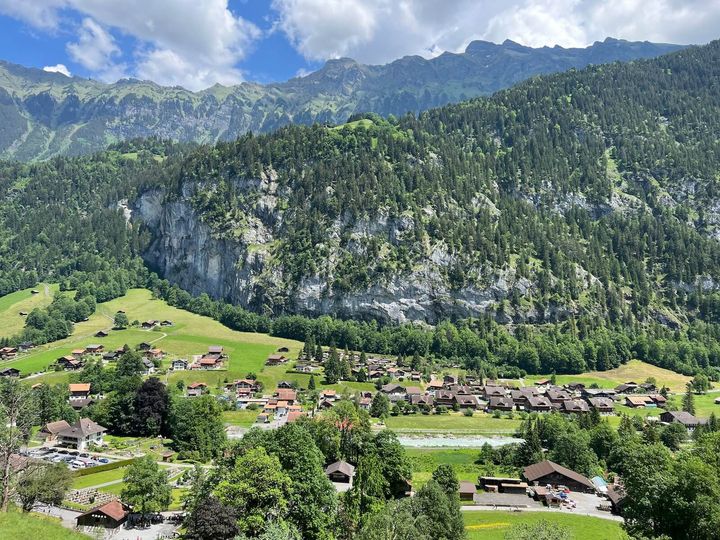 スイスの人気観光地、インターラーケンから片道わずか20分。美しい車窓の景色を眺めていると到着するのが、今回ご紹介したい村「ラウターブルンネン(Lauterbunnen)」です。