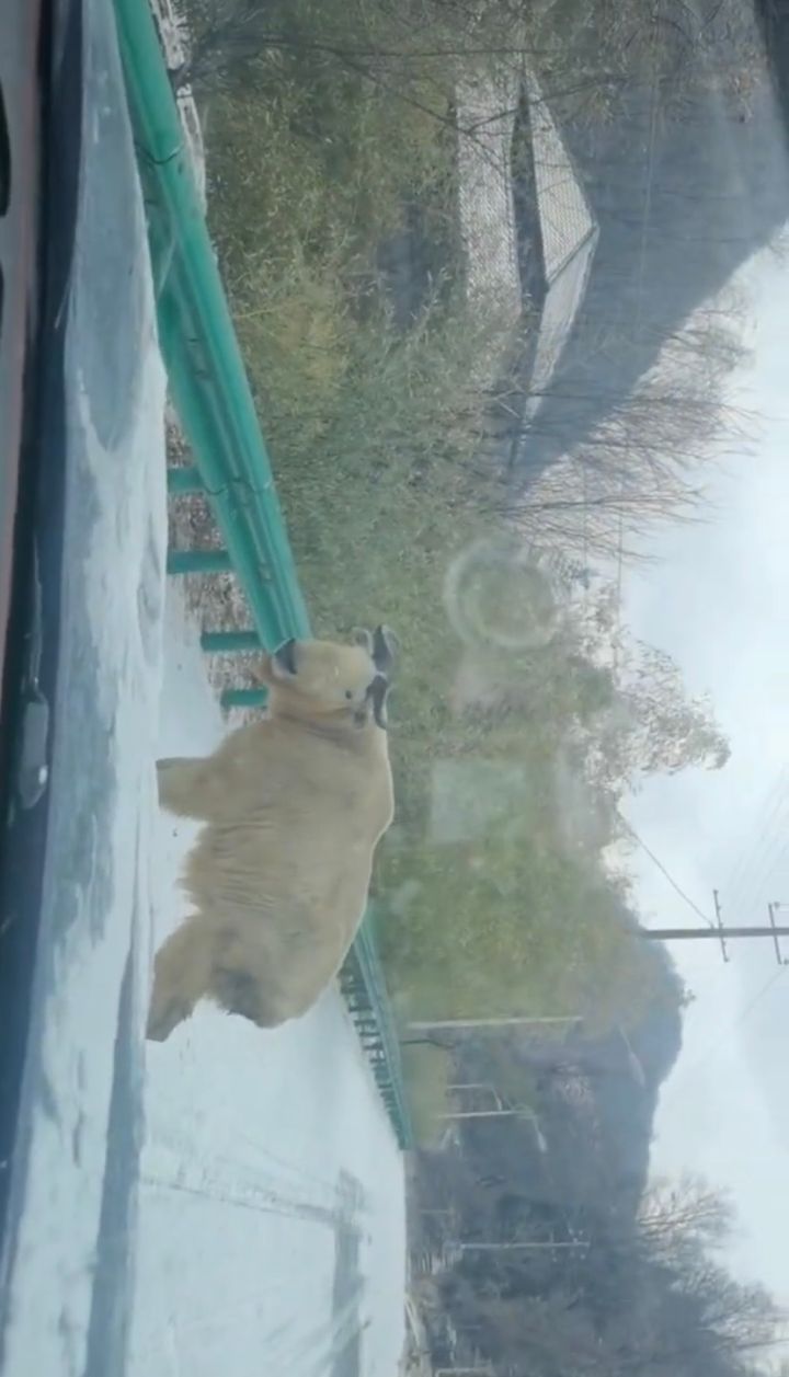 トボトボ歩き出したかと思ったら、うしろを振り返ってまたチラリ。 立派な体格をしていますが、その顔はとても愛らしくて穏やかな雰囲気です。