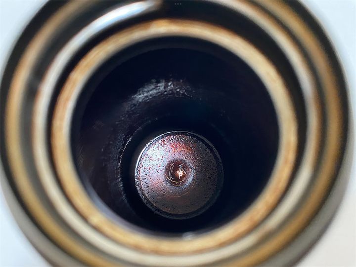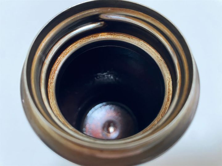 底をのぞくと、恐ろしいほど茶渋が溜まっていますね。じっくりみたことがなかったので、こんな状態になっているなんて知りませんでした〜!というのも、水筒は使い終わったらすぐに柄付きブラシと中性洗剤で奥までしっかりと洗っていたので、正直油断していました。