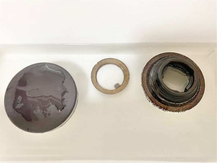 フタとパッキンも、とってもきれいになりました!水筒が茶色なのでわかりにくいですが、しっかりピカピカになっています。