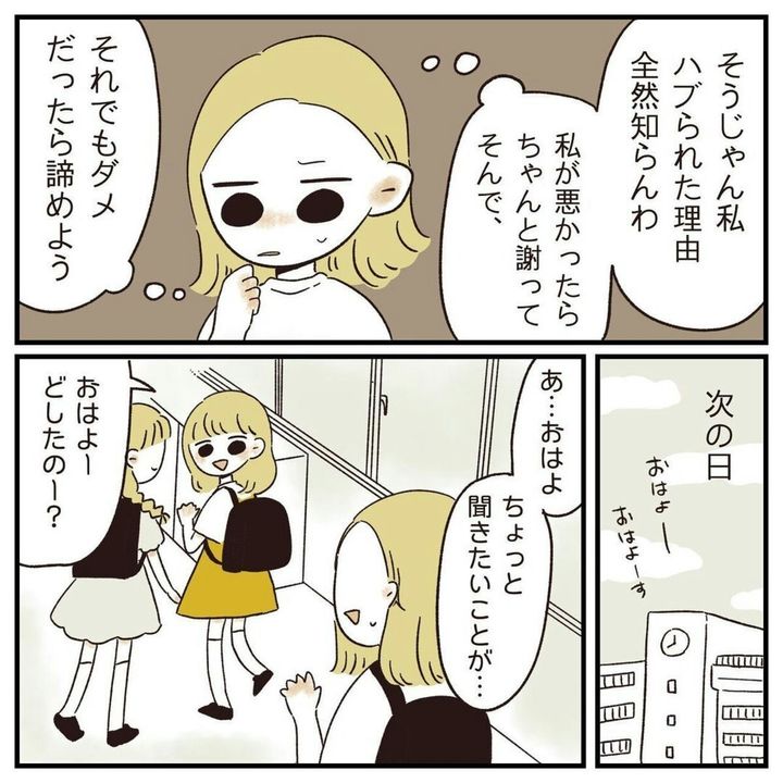 急に無視しようとしたAちゃんには悪意を感じますが、それに乗っかってしまった友達にも幻滅してしまいますね…。