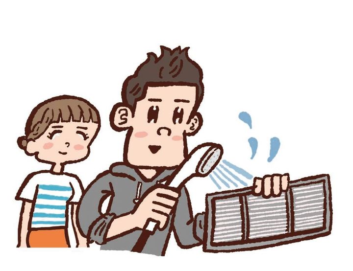フィルターが目詰まりしていると、空気の通りが悪くなって設定温度に達するまでに時間がかかり、無駄な電力を消費します。フィルターを掃除することで、冷房時で約4%の消費電力削減が可能に。環境省のウェブサイトでも、2週間に一度の清掃が推奨されています。また、室外機の吹き出し口がふさがれると、冷房の効率がダウン。まわりに物を置かず、排気をよくすることもポイントです。