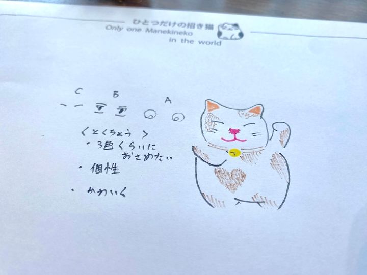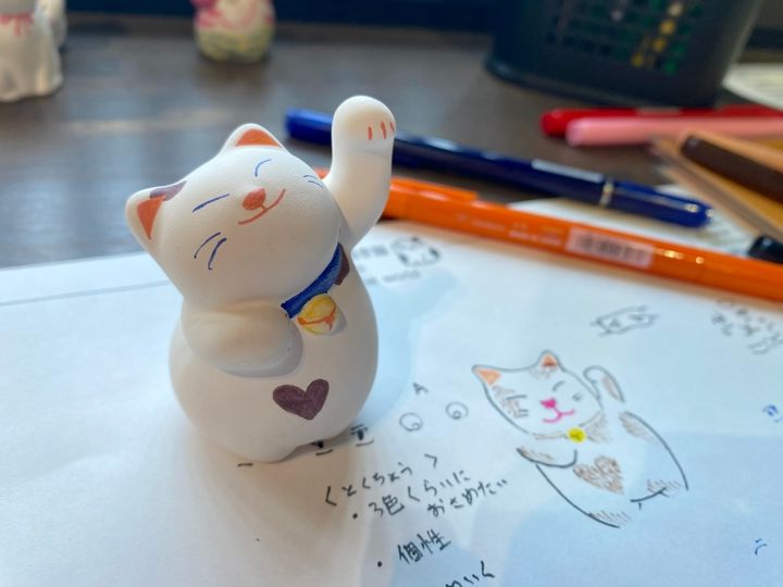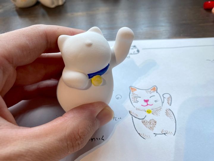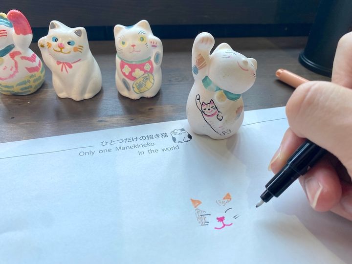 見本の招き猫もいくつか置いてあるので、それを参考にすれば絵が苦手な人でも安心して決められますよ。