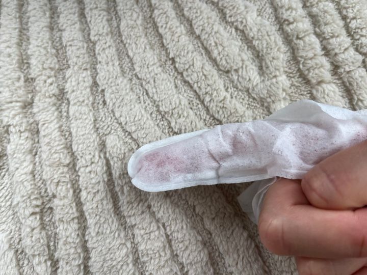 指型になっており、指にはめて拭くだけです。水がいらないので、災害用グッズに入れておいても良いかもしれません。
