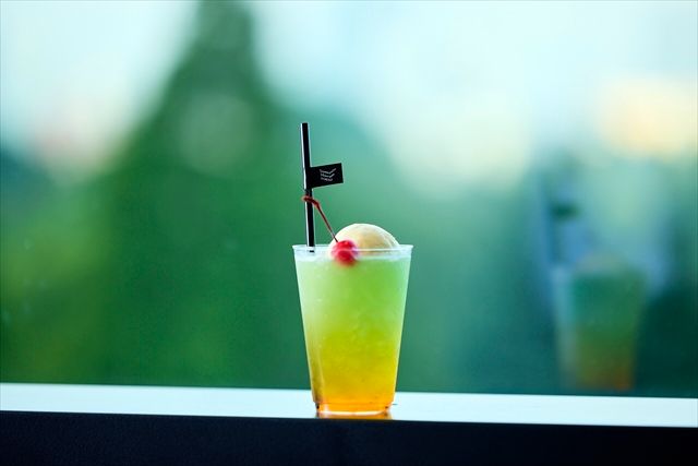 時間の移ろいとともに変化する光と色を表現したモネの目をグラデーションクリームソーダで再現しています。