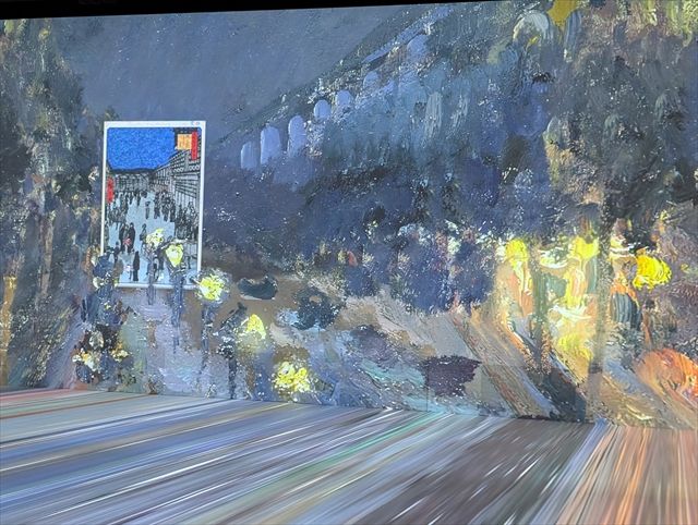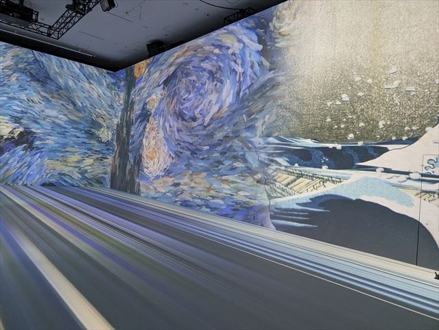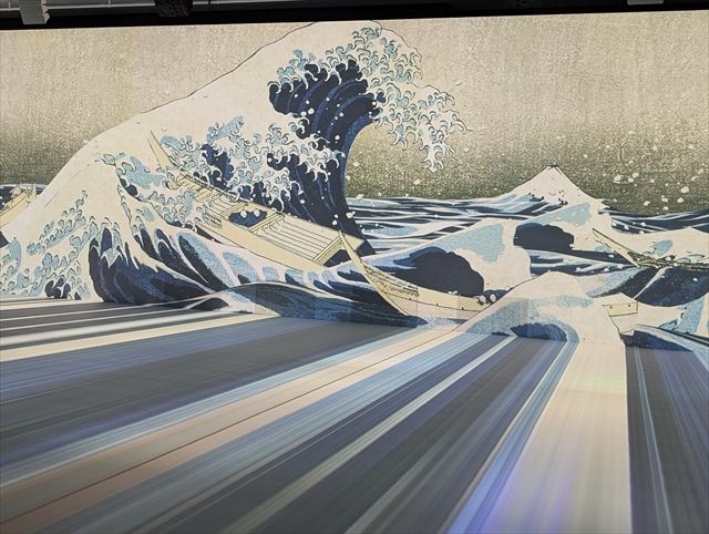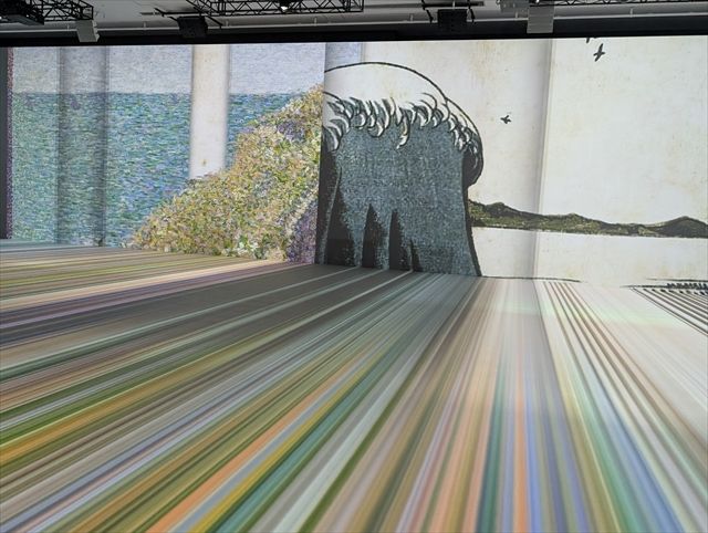 クライマックスは葛飾北斎の『富嶽三十六景 神奈川沖浪裏』とゴッホの『星月夜』。どちらも自然のエネルギーを感じられる作品です。2つの画が繰り返し目の前に広がり、荒波に飲まれてしまいそうなほど大きく動きます。