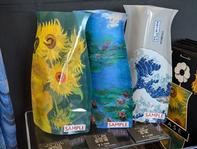 こちらはゴッホ、モネ、北斎の絵のフラワーベース(税込1,760円)。これでお花を飾れば、よりお部屋が華やかになりそうですね。