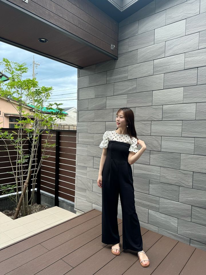 トップス部分はタイトですが、ボトム部分がゆったりとしているので、メリハリがでてスタイルアップ✨
