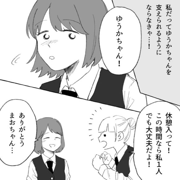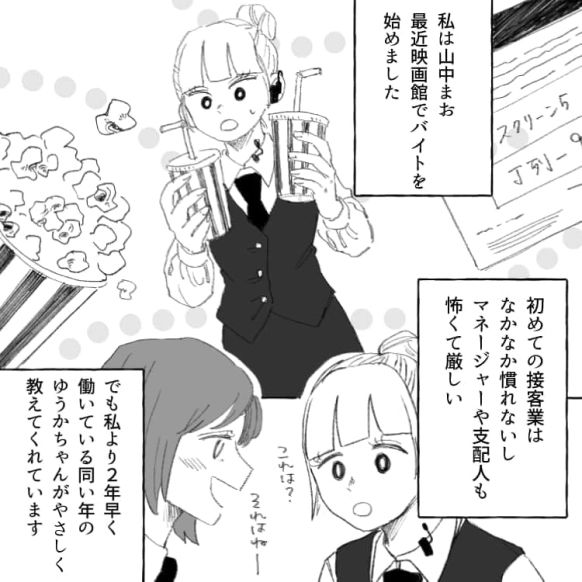 支配人やマネージャーは怖くて厳しいなか、やさしく教えてくれる同僚のゆうかちゃんは、主人公にとって頼りになる存在でした。