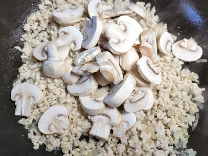 4. マッシュルームを入れて炒めます。