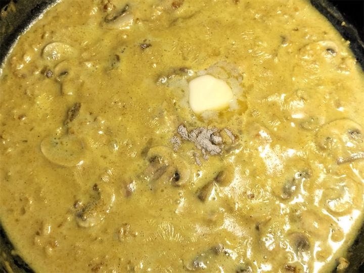 8. 残りのバターを加えて、焦がさないようによくかき混ぜながらトロミをつけます。