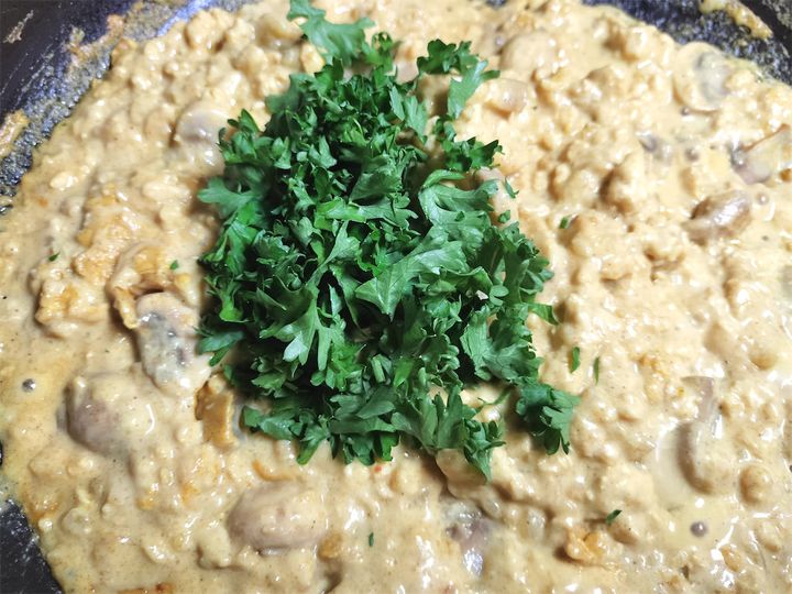 9. パセリを加え、軽く混ぜ合わせます。