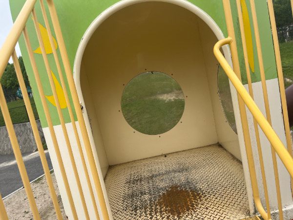 黄緑の鳥の中に入れるようになっていました。 子どもと友達が一緒に窓から見ている姿を、下から撮った写真は可愛かったです。