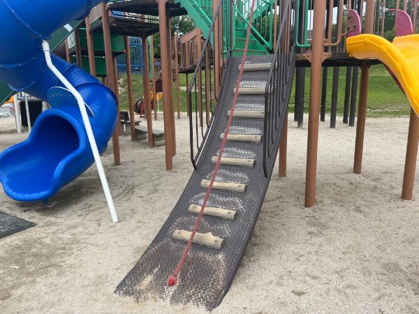 滑り台以外にもトンネルや橋、ロープを使って登る坂もあって、子どもたちが楽しく遊んでいました。