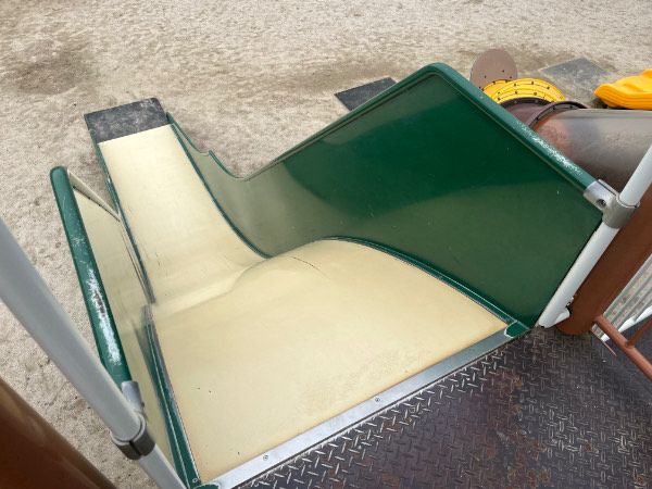 手前の緑の滑り台は、スピードも出て急降下してスリルがあるものでした。