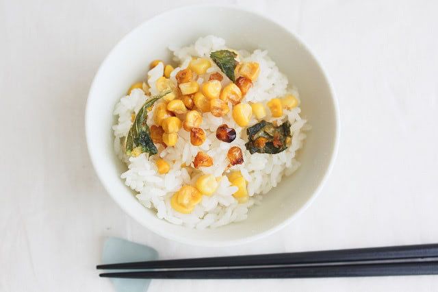 塩を少し加えた程度ですが、とうもろこしの甘さがしっかりご飯に染み込んでおいしいです!少し薄味だったので、しょうゆを加えて炊いてもよかったかもしれませんが、粒がたっぷり入っているので満足感があります。揚げている途中に外れた具材もご飯にのせると、香ばしくコクが出ました。