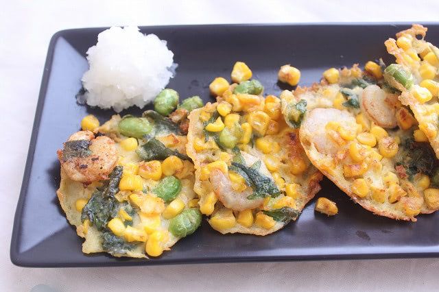 「夏野菜の米粉かき揚げ」は甘くてカリカリ、冷めてもおいしい♪