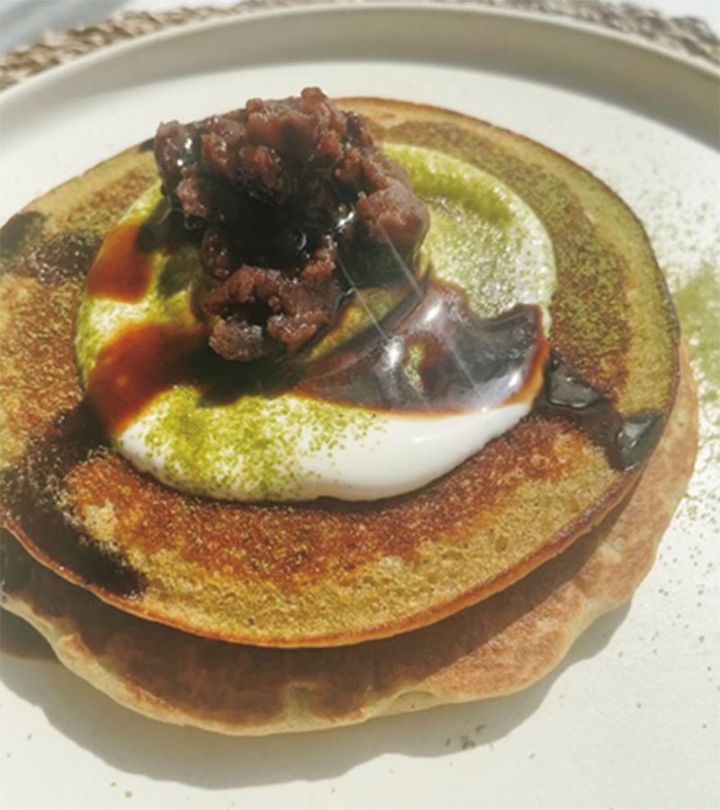 抗酸化作用のある抹茶を入れて和風なパンケーキに。白味噌を入れてアレンジを楽しむこともあります!