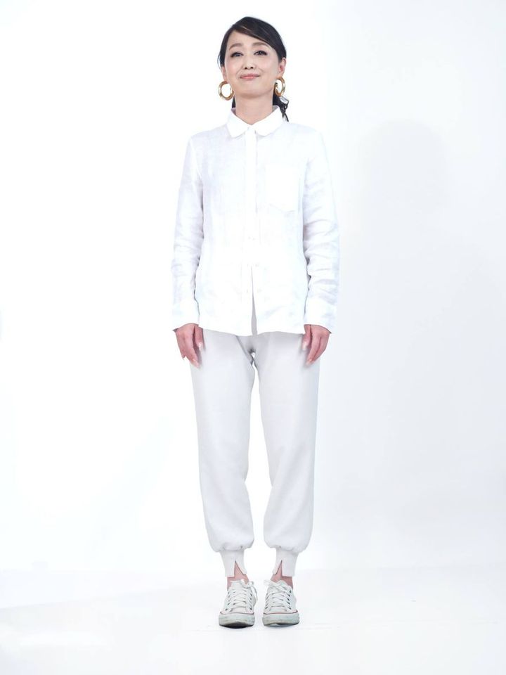 実は同じ洋服を着ている写真ですが、「首、手首、足首」の3つの首を露出しているか、していないかの違いです。たったこれだけのことですが、なんの変哲もない白シャツに簡単なテクニックを施すだけで、まるで魔法をかけたように違って見えます。