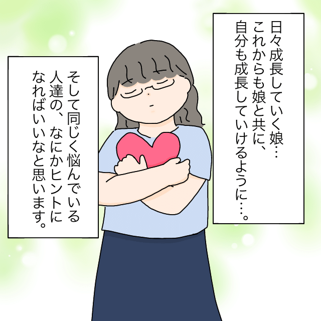 娘の話で、ほんの少しでも私が感じたあの真っ暗な世界にいるかもしれない方に、どうしていいかわからずに悩んで、途方に暮れている方にひとりじゃないことを伝えたいです。