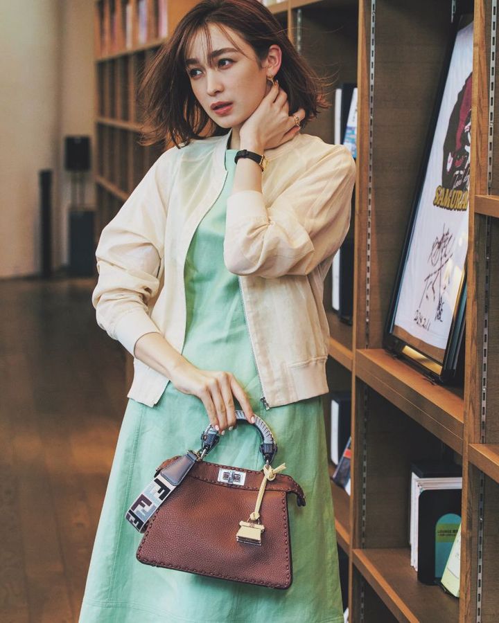 バッグ「ピーカブー アイシーユー スモール」¥819,500ハンドルカバー¥132,000ストラップ¥85,800バッグチャーム¥82,500ピアス¥85,800時計¥215,600リング¥85,800(すべてフェンディ/フェンディ ジャパン)ブルゾン¥49,500(ギャルリー・ヴィー/ギャルリー・ヴィー 丸の内店)ワンピース¥14,960(シップス エニィ/シップス インフォメーションセンター)