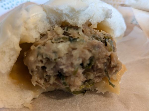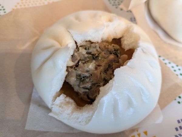 豚まんの皮を破れば、小籠包を思わせるような肉汁がおいしそう!