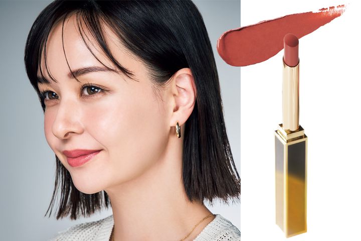 薄唇さんも塗りやすい、すっきり細身の形。「唇の地色に馴染んでくすみを飛ばしながら、しゃれ顔に見せる色」。(神戸さん)