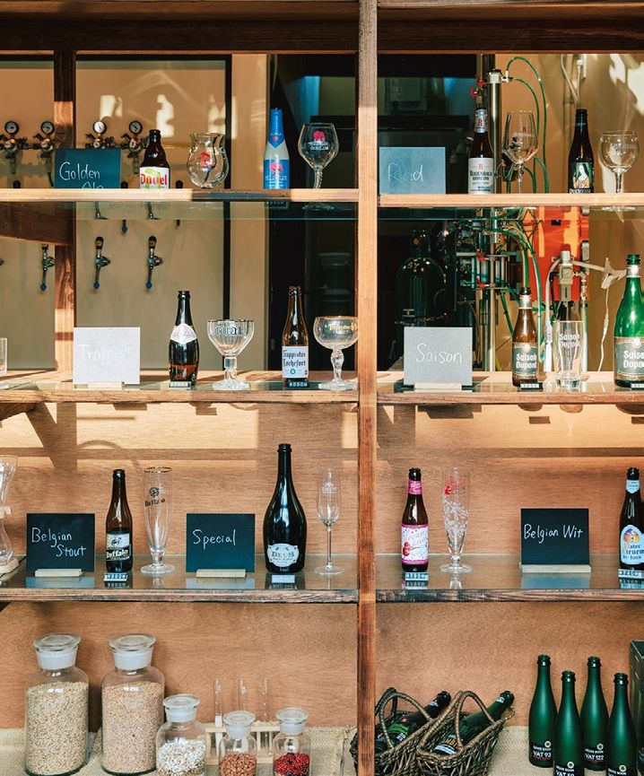 大学で哲学を学ぶうち、お酒を飲みながら思考する習慣が身につき、ベルギービールに出合ったという木月二郎さん。その柔軟な精神性に惹かれ、ベルギービールを手本にしたビールを造り始めたという経歴がユニーク。初リリースの「野生の思考」は、ベルジャンウィットと呼ばれる小麦のビール。大原のレモングラスなどを使い、京都で造る意味を持たせたものもある。タップルームでは「野生の思考」や「White is new Black」など4種のビール250ml各¥550を。