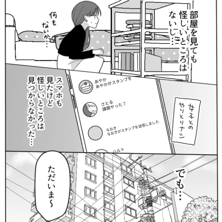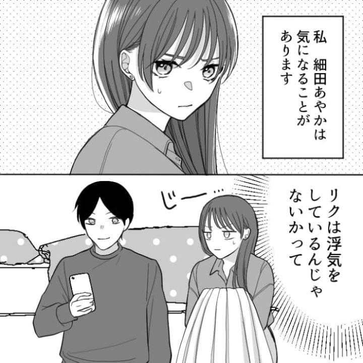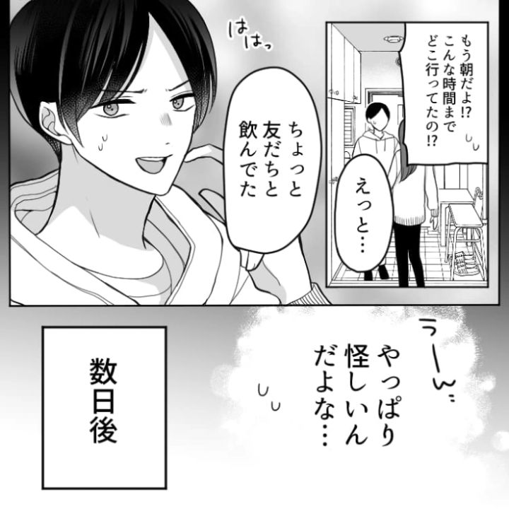 彼氏の浮気を疑っている様子の主人公。朝帰りが増えたり、隠し事をする彼氏の浮気を疑っていますが、そのほかには怪しいところがなく・・・。