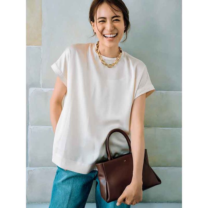 Tシャツ感覚でラフに着られて 洗練度も高い万能サテントップス!