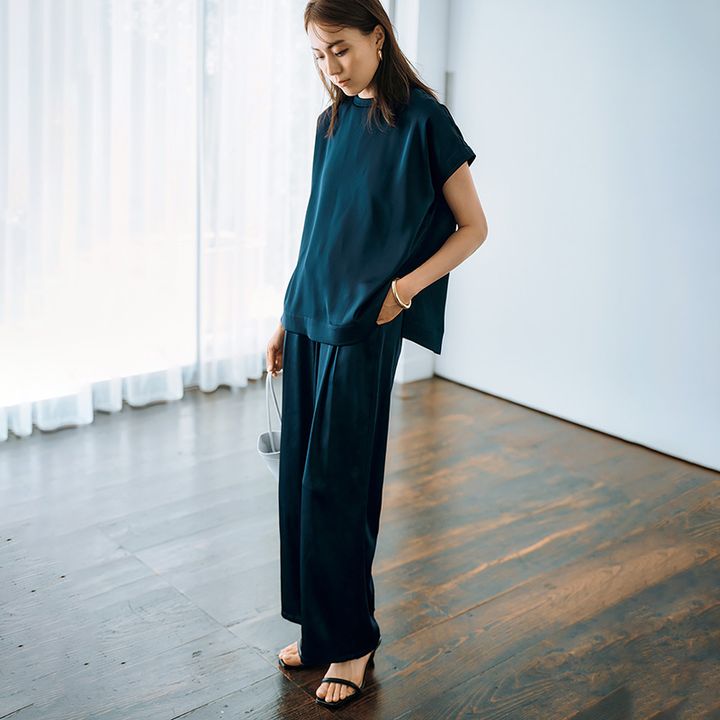 ▶︎真夏に楽ちん【セットアップ】でリッチ見え!シルキー素材でカジュアル軽減