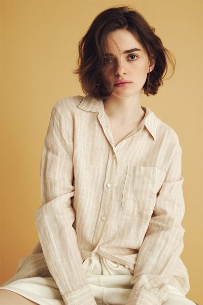 くたっとしたシャツにショートパンツとリラクシングな格好。少しは締まりが欲しいから、ぼやけず、色浮きもしないピンクとグレーの中間色をオン。はっきりしない2カラーの効果で、火照ったような血色感を出しながら、アンニュイな色気のある表情が実現。 リネンシャツ 8,990円/Gap ショートパンツ 28,600円/エイトンステイプルズ