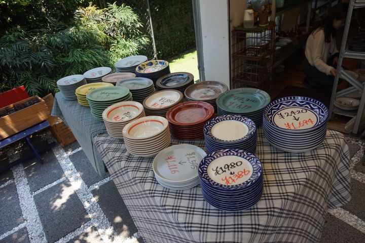 お店の外にまでお皿が並んでおり、