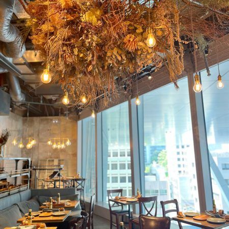 また、店名にあるように、ドライフラワーが天井にたくさん飾られていて、ナチュラルで落ち着くデザインに。 ソファ席もあるので、時間内はゆったりと過ごせそうです。